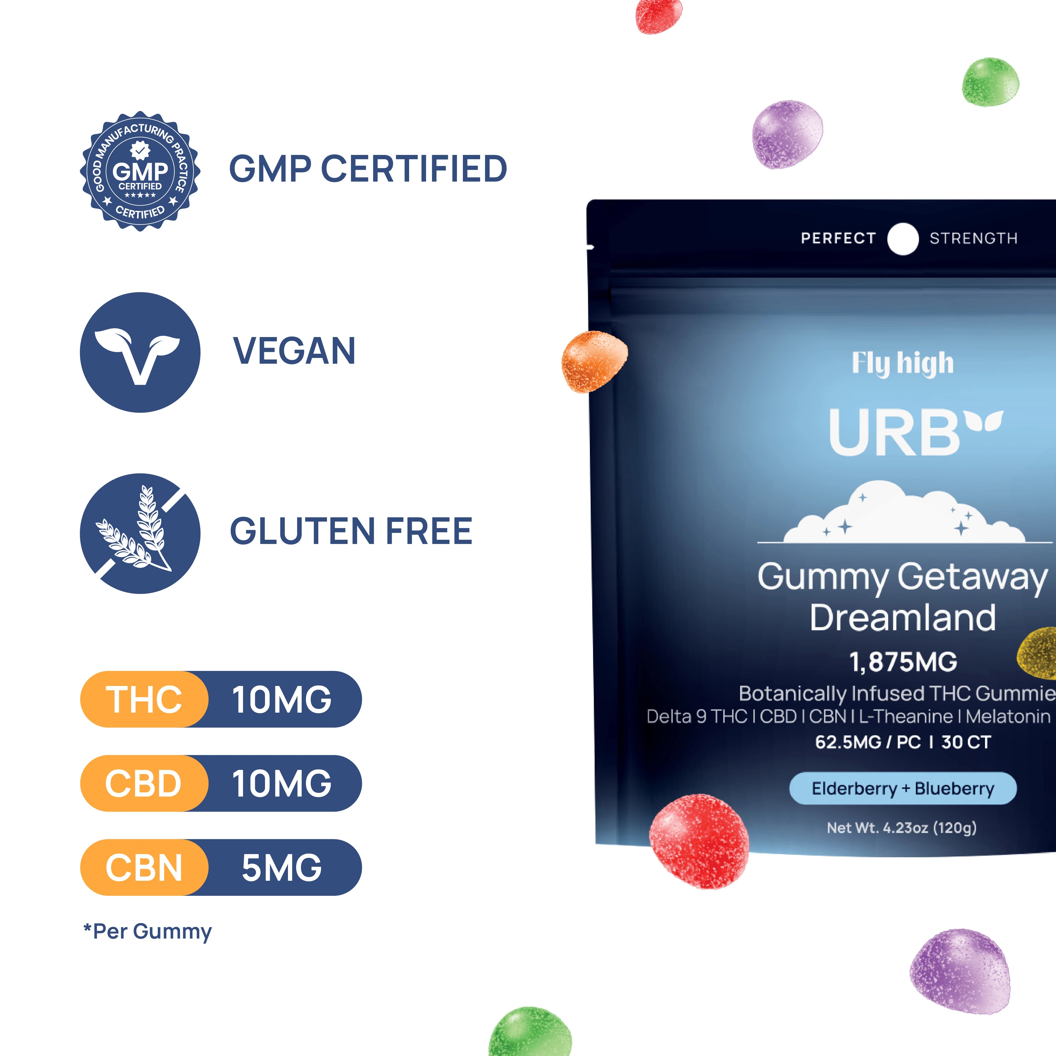 Find your calm and ease into a deeper kind of rest with Urb’s Dreamland Gummies—botanically infused THC edibles designed to support your nighttime routine.