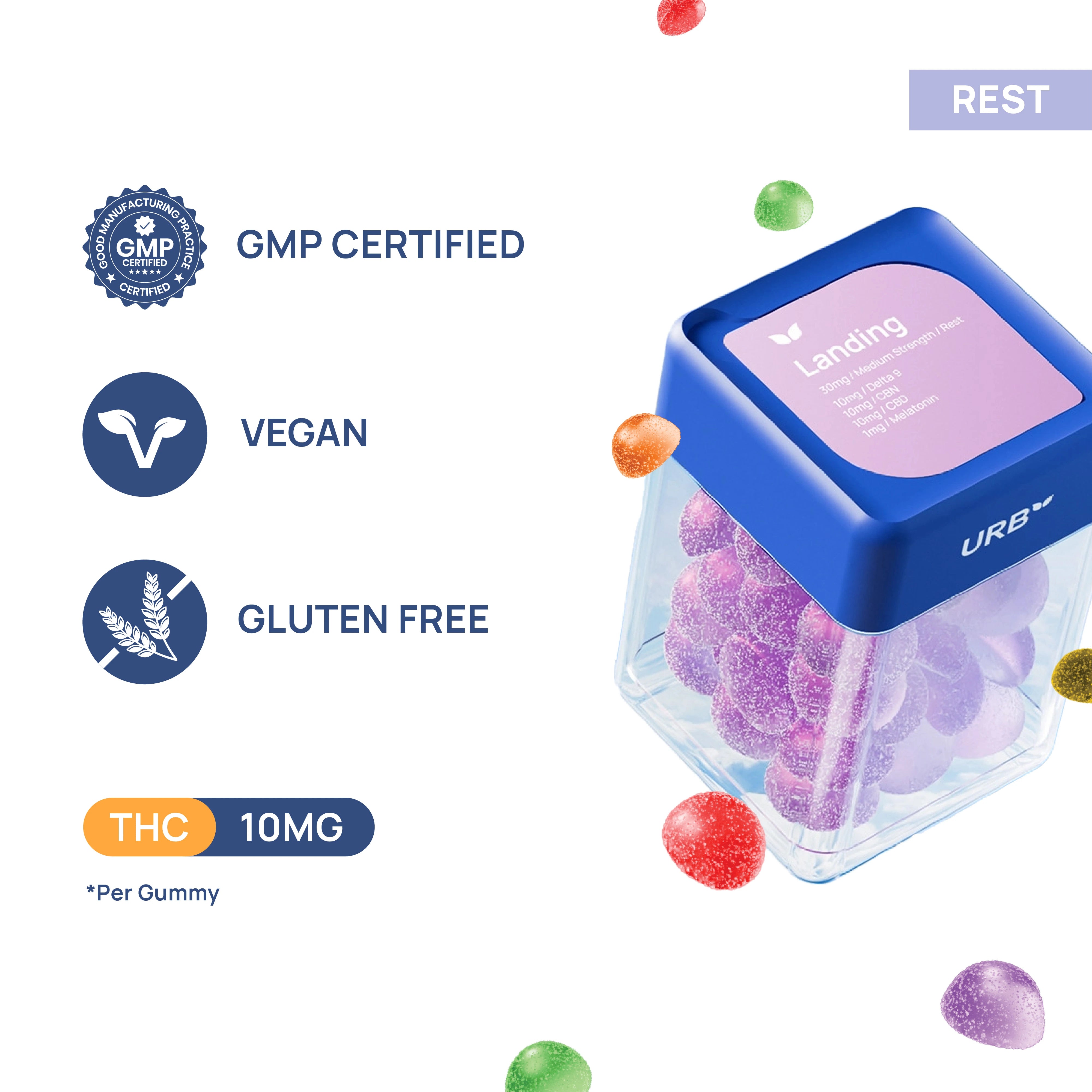 Crafted from premium, USA-grown cannabinoids and made in full compliance with the 2018 Farm Bill, these gummies are produced in a facility that follows Good Manufacturing Practices (GMP) to ensure consistency, quality, and safety. Each batch is third-party tested to meet the Urb Standard.