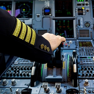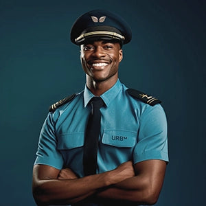 Pilot with joystick showcasing Urb Shop's aviation theme